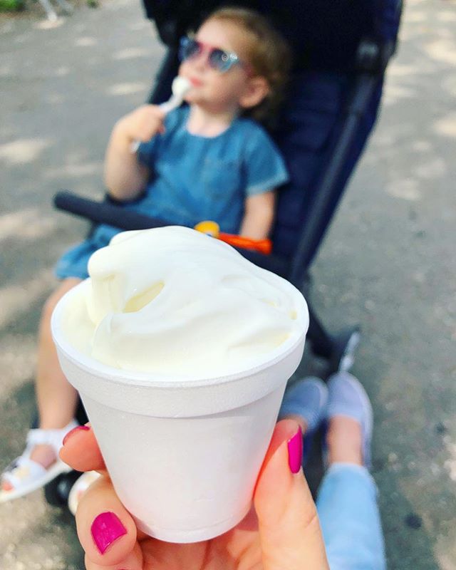 Эта волшебная пора! Мороженое на лавочке, шелест листвы и теплый ветерок 🌳🍦😋 Не терпится начать выгуливать летние вещички уже 🥳 и сангриииия! Начнется сезон сангрии на причале и в парке 👯♀️🍹 #лето #мороженое #ньюйорк #мамаидочь #летниепрогулки #авталлиннеснег😂